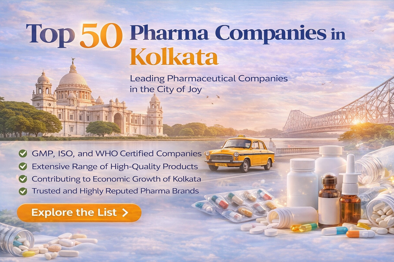 The top 50 Pharma Companies in Kolkata are the companies that adhere to the regulations of ISO, GMP, and WHO. The city has already served many decades in providing shelter and support to various pharma companies. The city has a specialty in the manufacturing of jute. It has also been provided the title of the largest metal production city. The companies have helped in the overall economic development thereby raising funds for the nation.
